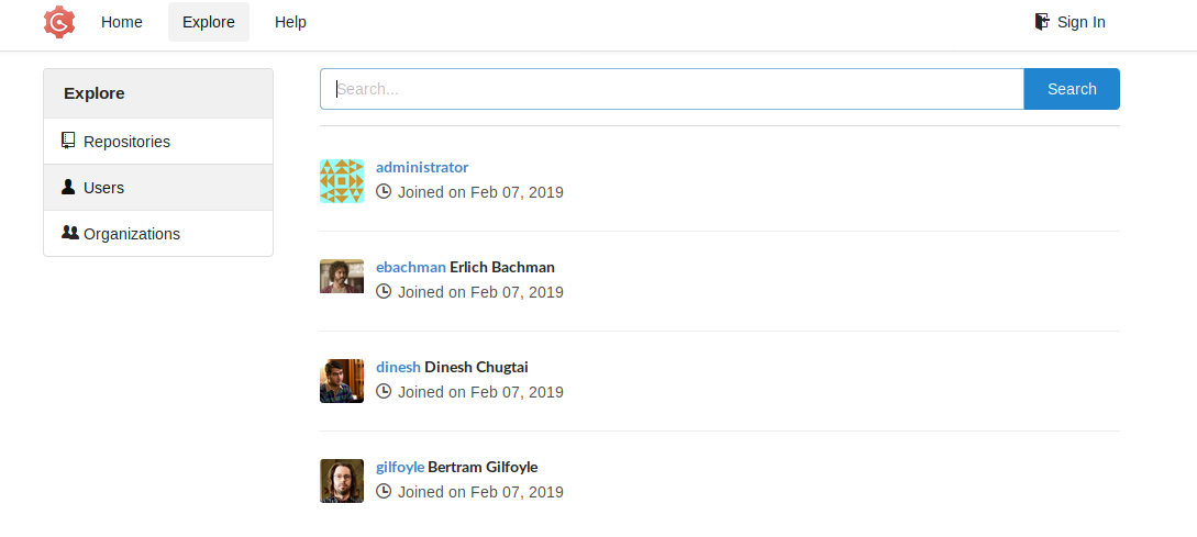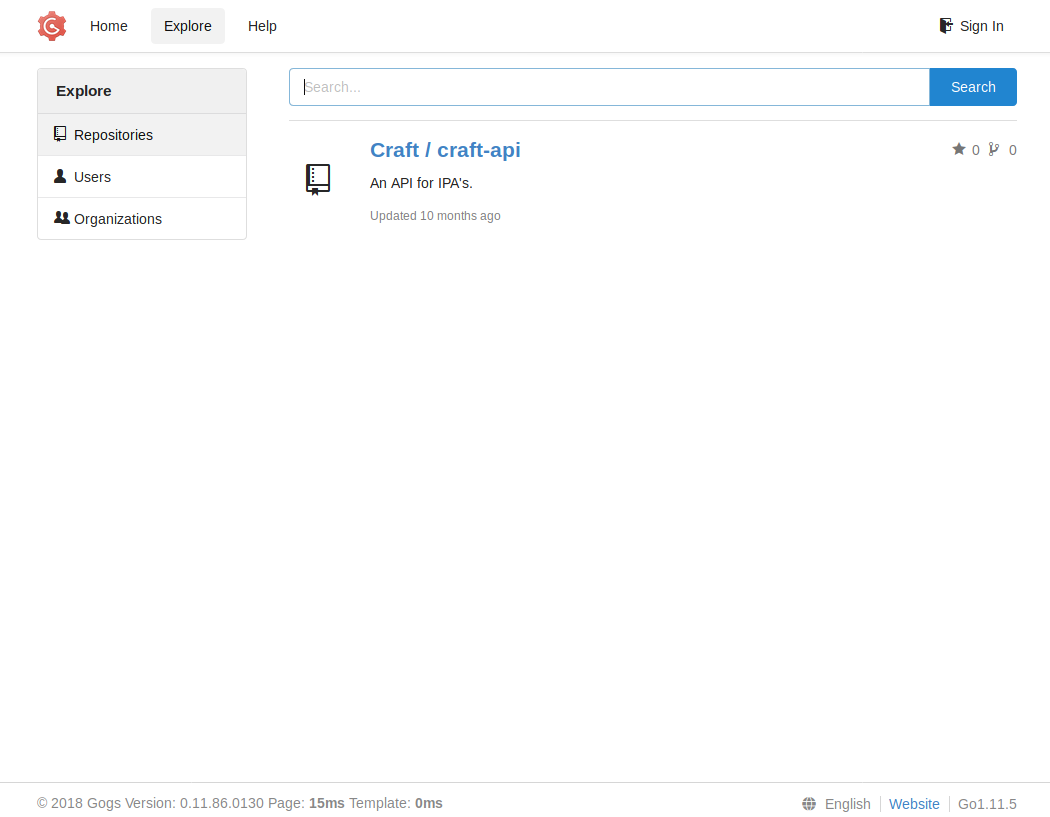 We see in explore there is a repository named craft-api and that the users is our gang from Silicon Valley.