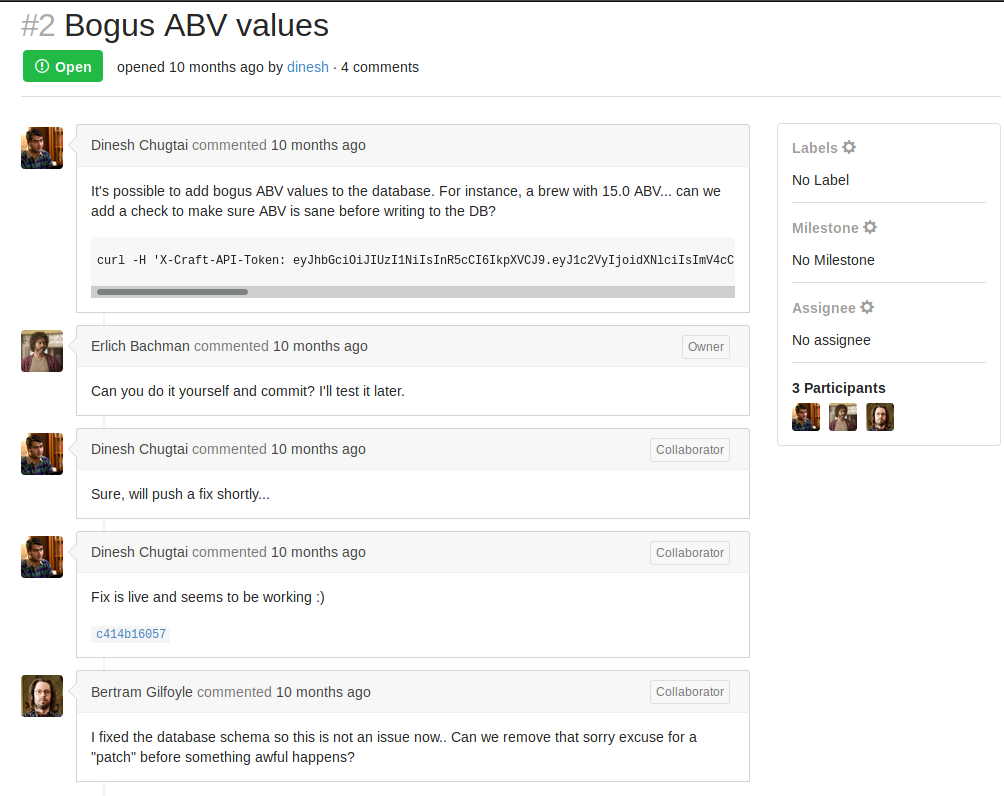There is an issue open, so we go inside it, and there is a “fix”, one that Gilfoyle is not happy about it.