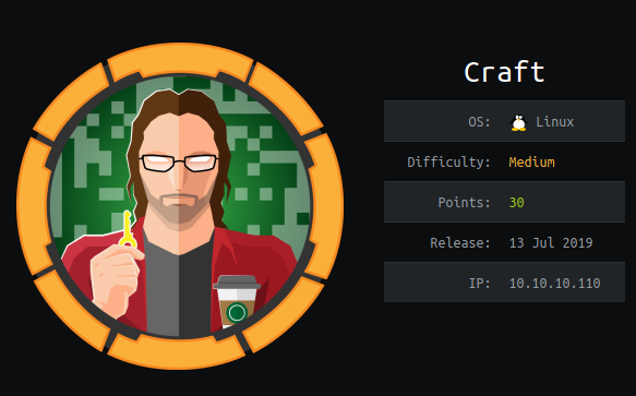So!! Today was just retired Craft from Hack the box, this was a really fun box to do, and also I felt pretty well doing it, because even if I needed some nudges, it was actually the first box I got to the foothold without hints (elsen if I needed some guidance with python, thanks a lot @Frundrod!!), and afterward to get user I was a bit lost and also needed some hints (was not realizing something I have literally in my nose, thankss a lot @Fugl!), root was easy by a little bit of enumeration and reading help command output.
